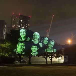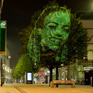 As part of the project, 33 trees in and around the centre of Manchester had the face of a nominated key worker projected on it. This gallery shows the results.